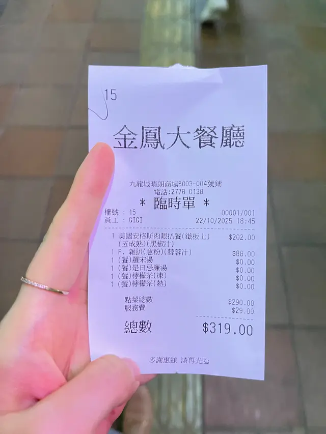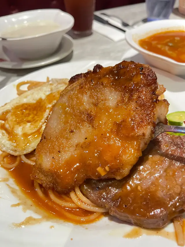水準之作 mini454Level 42025-11-02199 views Follow 這家連鎖扒房質素頗穩定。餐廳選擇很多,有排餐有焗飯,選擇包羅萬有,總有一款適合你。1餐包不錯,很軟很香,配上牛油不錯。⭐️美國安格斯肉眼扒餐肉質軟嫩多汁,火候控制得宜,油花分布均勻,肉香濃郁,體現了安格斯牛肉的應有水準。配上底下的薯條。⭐️雜扒意粉多款肉扒,有牛排和雞排,份量十足,意粉軟硬適中。餐湯方面,羅宋湯酸甜開胃,料多實在;雞肉忌廉湯口感香滑順口。飲品凍檸茶與熱檸水皆為中規中矩之作,清爽解膩。The above review is the personal opinion of a user which does not represent OpenRice's point of view.LikeShare水準之作 金鳳大餐廳 (晴朗商場) https://s.openrice.com/QrKT0x0fV00Report Post Ratings4Taste4Decor4Service4Hygiene4ValueDining MethodDine In