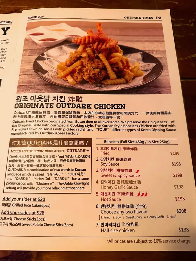 水準 Keep 得住 Fat KidsLevel 42023-05-1655 views Follow 今日同朋友喺旺角行完街,有啲想食韓國嘢但係又唔想食韓燒,所以就揀咗 Outdark,加上又好耐冇食。1餐牌同以前差唔多,款式冇乜大變化,今次叫咗海鮮炒年糕同燜豬腳。燜豬腳 (M Size $288) : 睇完個份量覺得價錢相當合理,豬腳有豐富嘅骨膠原 😍 加上已經調味,所以就咁食就得,如果想口感層次豐富啲,可以配埋生菜、青椒、紅椒、蒜頭等配料。海鮮炒年糕 ($328) : 咁多款裏面自己最愛呢款,因為呢度個炸魷魚圈真係好正,加上本身呢款帶少許辣,所以食落更加滋味。見到有唔同生果味嘅啤酒,所以就叫咗其中兩款,兩款味道都唔錯,不過自己比較鍾意莓味。The above review is the personal opinion of a user which does not represent OpenRice's point of view.LikeShare水準 Keep 得住 Outdark (飛達商業中心) https://s.openrice.com/QrKT0Jfr900Report Post Ratings5Taste4Decor4Service4Hygiene4ValueDining MethodDine In