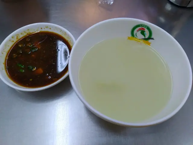 點水門雞飯配有一碗湯和用來沾雞的醬汁。湯的胡椒味很重,帶點辣,裡面有一件冬瓜。醬汁濃味,酸酸辣辣配著雞飯很惹味。
