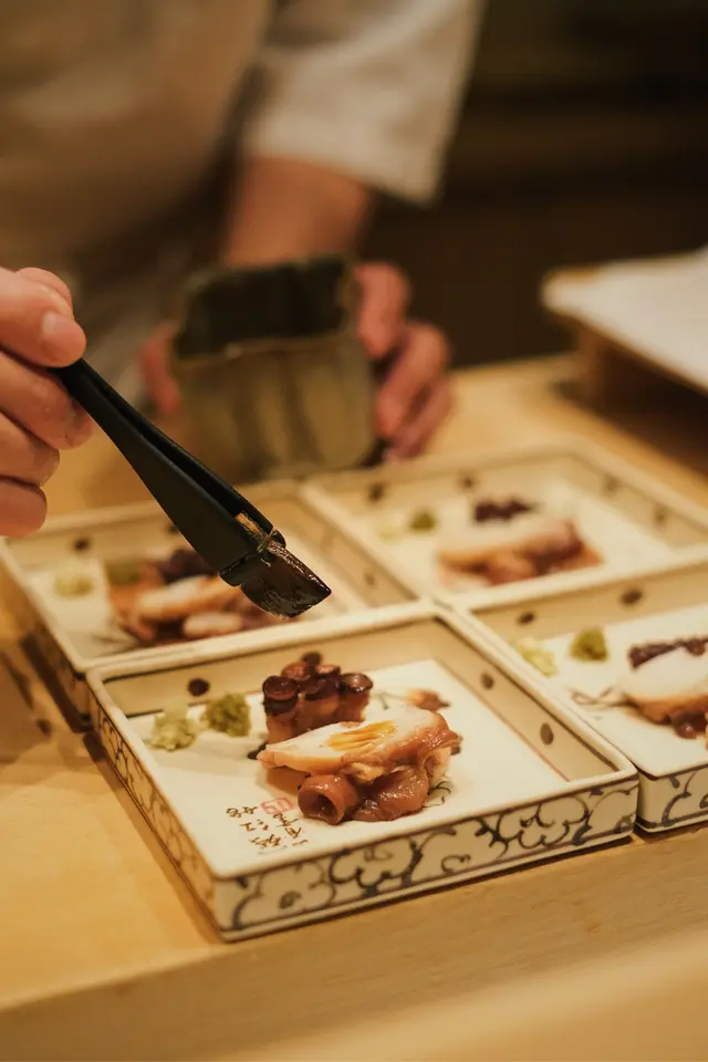 最期待嘅北海道八爪魚環節,點都要影吓相先對得住自己😋 慢煮過嘅八爪魚非常軟嫩,簡單地配上柚子胡椒 & 芥末已經足夠!