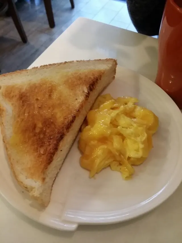 炒蛋多士 炒蛋賣相好 但只是表面,類似大家樂式 中間已經硬實 多士烘得半燶 滿意