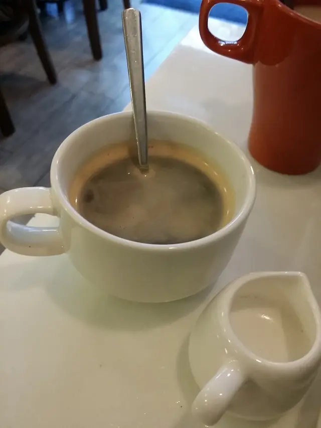 咖啡, 只有半杯多少少, 可能因為方便加奶, 但估計, 加了奶後, 都只是有四分三滿, 不過, 好啱我, 因為我好聽醫生話, 通常都只是半杯,