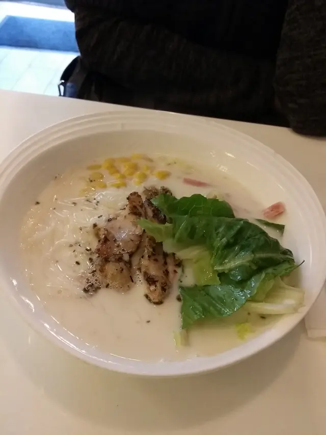 香草雞肉火腿絲湯米, 配蛋和多士, $38, 米粉屬於台式的幼身品種, 米粉唔同麵, 麵好易淋, 米粉無咁易淋. 湯底是金寶忌廉湯, 如果以純湯考慮, 則味道較淡, 但如果以配粉麵的湯底考慮, 則可以表受. 雞肉是有燒邊的款式(應該即係餐牌所言的香草邊), 整體味道與口感不錯.
