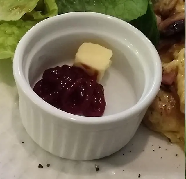 另一小兜, 放了一小粒牛油和果醬, 牛油小得可憐, 唔夠我查四分一件包.