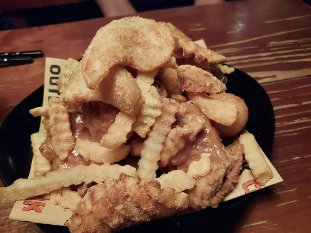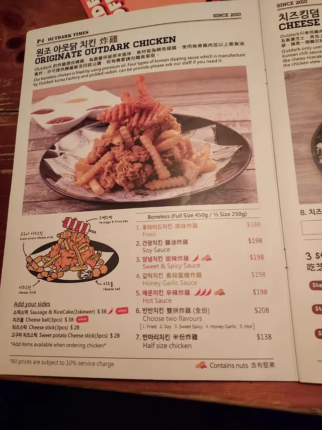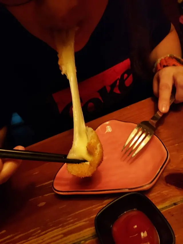 香蒜蜜糖炸雞有6件,每件有女仔手嘅4隻手指拳頭大。雞肉保持肉汁,雞肉滑。蜜糖份量剛剛好。除了有炸雞之外,有炸波浪紋薯條(不過薯條不夠脆),薯角,格格薯脆伴碟。我地仲加咗$38有3粒大大粒芝士波,芝士波拉絲的,好好食呀!