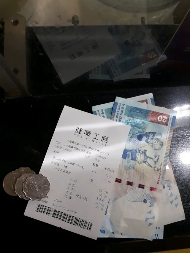 由於「健康工房」雪櫃裡面的飲品大部分都屬於中式飲品,又或者是中式涼茶,跟我一向喜歡的飲品口味截然不同,所以我最後只購買「健康工房」廚房製造的「淮山杞子豬肉燒賣」跟「茶葉蛋」而已,店員很快已經造好食品和交給我。
