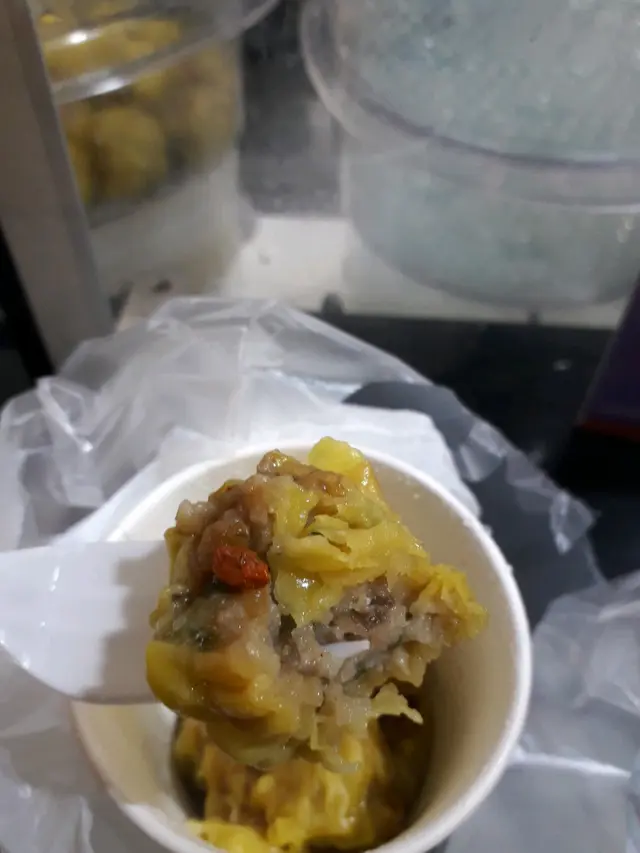「淮山杞子豬肉燒賣」最後食到的彈牙口感感覺,只能夠依靠食店廚房製作「豬肉燒賣」期間,依靠不斷用刀反覆剁碎「豬肉」過程,令「豬肉」裡面產生出來的「膠質」,令「淮山杞子豬肉燒賣出燒賣」出現彈牙口感。