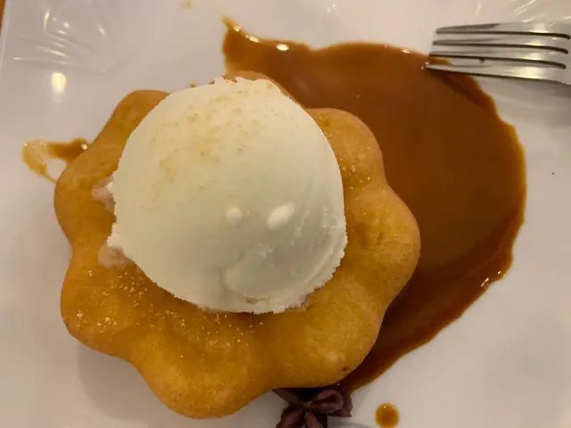甜點就是今日超期待的冬甩🍩,原味冬甩、香草雪糕、森宇牛奶糖醬、紅豆泥,日式的冬甩其實就很像蛋糕,鬆軟又帶有麵粉的W彈口感、溫熱的配上香草冰淇淋