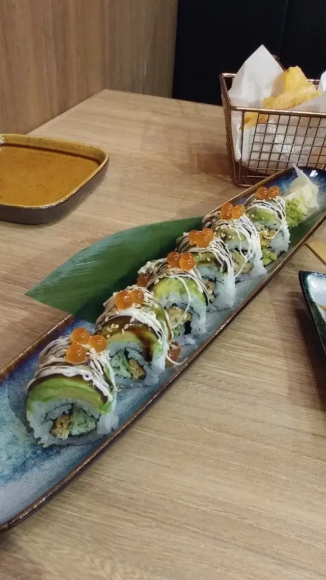 牛油果三文魚籽軟殼蟹卷 ($52)是我最感意外的一道。卷上頭鋪了厚厚的牛油果層,軟滑的跟飯卷中的香脆軟殼蟹成了個對比。表面的三文魚籽鹹香,醬汁也濃味,不用蘸醬油也好吃。