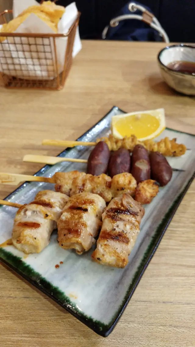 我們也點了數串串燒分享。雞軟骨串($12/1串)香脆爽口,調味剛好。迷你甜薯($12/1串)粉軟香甜,雞皮串($12/1串)烤得焦香不膩。最特別是蘋果豚肉卷($22/1串),豚肉烤過後油脂都滲了出來,搭上切條蘋果卻收解膩之效。
