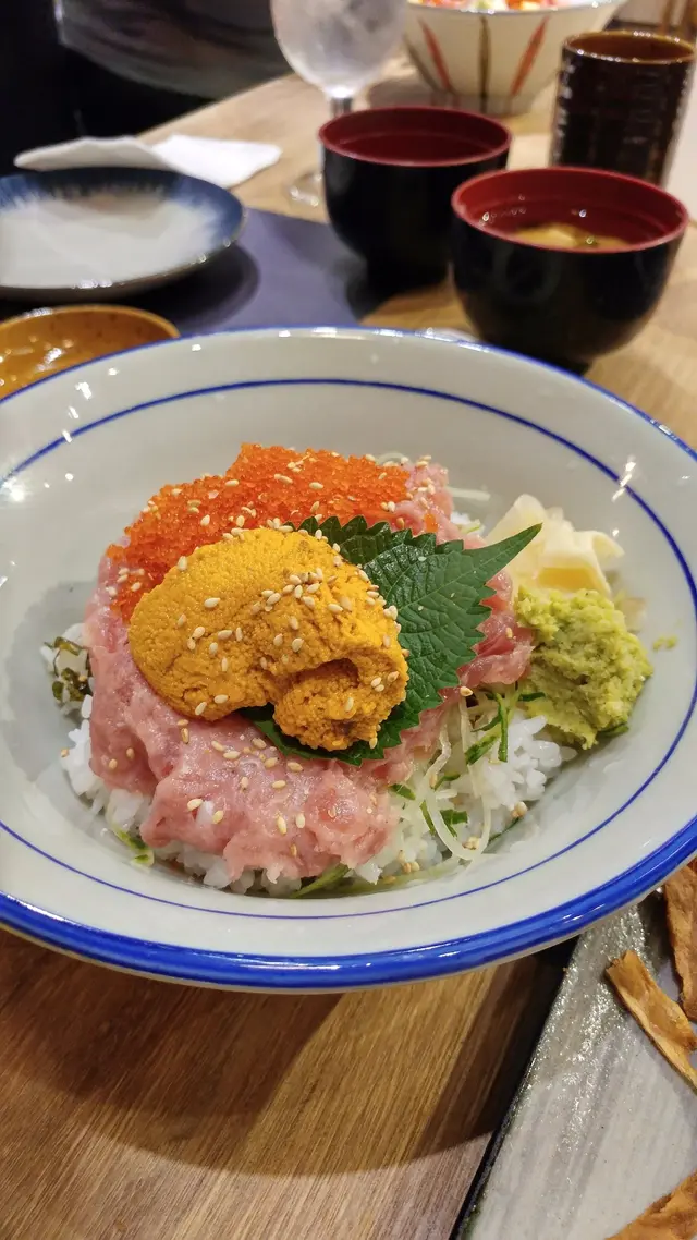 我們最先決定要點的就是網上最多人推介的藍鰭吞拿魚蓉雲丹蟹籽飯 ($98)海膽份量雖不多, 但味道算清甜無腥臭味。吞拿魚蓉味鮮滑溜, 伴上爽脆的蟹籽, 下飯很不錯。晚餐附送味噌湯, 計起來也很划算。