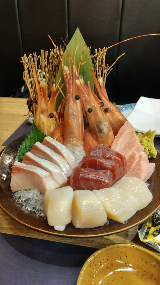 刺身是由我們自由配搭的,不是放題的原故我們也不敢亂點太多。雖每類只點了剛好每人一片,但刺身切得厚厚的也讓我們覺得滿足。最貴的藍鰭中拖羅 ($438/4片), 白色的油脂分佈太細密,差點把粉紅的肉都蓋過去了。油香重且一不小心差點嚼也未嚼便整片吞下。赤身 ($98/4片)顏色較暗沈但帶光澤,水準不錯。油甘魚腩 ($78 /4片)厚切令其口感更好。珍寶牡丹蝦 ($196/4隻)甘爽味美,肉間沒有解凍後留下的碎冰。而最便宜的帶子 ($48/4片)竟然是這麼大的一顆, 雖味道不是最上佳, 但絲毫雪味都沒有,物超所值。