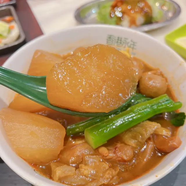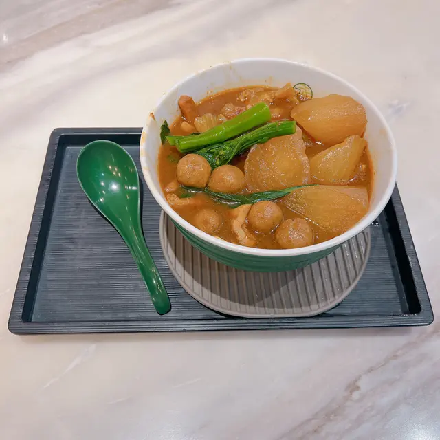呢個係沙田限定嘅新品 有牛筋 牛肚 魚蛋 咖喱魷魚同蘿蔔 牛筋煮到軟糯入味 牛肚爽彈 魚蛋同咖喱魷魚夠哂經典 最驚喜係蘿蔔 索哂d咖喱汁又清甜無渣 麵底揀咗油麵 掛汁力一流