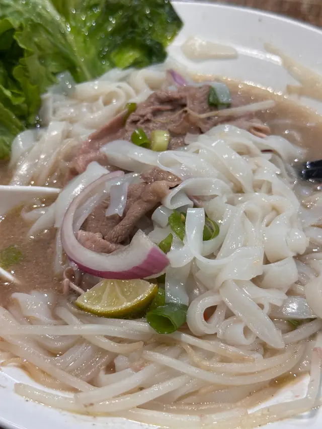 一上枱就聞到陣陣湯底嘅香味,清澈見底,但飲落去係濃郁嘅牛骨香同鮮甜,每口湯都充滿層次感。河粉好滑,唔會黐埋一舊,吸晒湯底嘅精華,食落去非常滿足。生牛肉片切得夠薄,放落湯裡輕輕燙熟,肉質嫩滑又有肉香,配埋九層塔同青檸,仲有一陣清新嘅感覺,整體味道非常平衡。