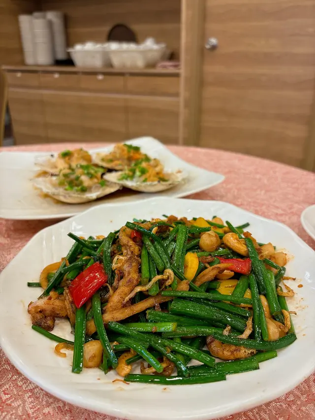 小炒皇嘅材料好豐富,有魷魚、蝦仁、帶子同埋蔬菜,炒得啱啱好,唔會過火。啲海鮮新鮮彈牙,蔬菜爽脆,加埋啲蒜蓉同辣椒,味道層次分明。每一啖都充滿鑊氣,真係食到停唔到口!👍 呢個菜式唔單止味道好,仲好有視覺效果,擺盤精美,令人食得開胃又開心。🎨