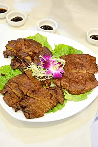 蜜汁叉燒,雖以麵筋來造,但口感令人有驚喜,咬著跟真的叉燒很相似,但甜味可以再濃郁一點。不過香脆乳豬件口感就一般,味道也不夠香,較為普通。