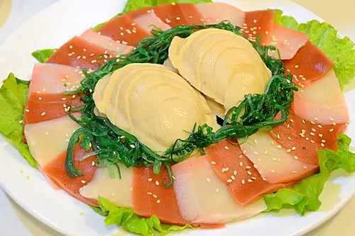刺身以洋菜粉來造,賣相也造得迫真,吃下也有點咬口,口感也好。