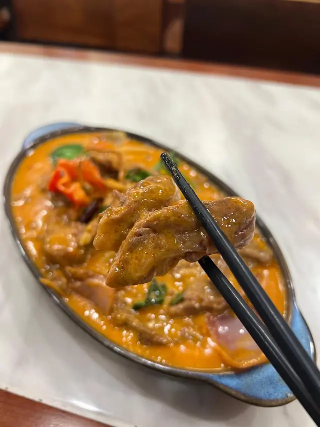 選用牛肋條,慢煮到軟淋入味,輕輕一咬就咬開,而且完美保持牛嘅肉香,再用泰式紅咖哩醬燒到表面微焦🍲,香氣撲鼻。味道層次爆燈,紅咖哩帶椰香🥥,辣度溫和,牛肉吸滿咖哩汁,咬落juicy唔鞋口。