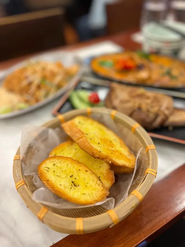 法包外層烘到金黃脆口,咬落「咔嚓」聲💥,內裡保持軟熟。蒜蓉牛油沾滿成個包,蒜香濃郁但唔會嗆喉。用佢嚟沾紅咖喱,索晒咖喱汁就啱哂🥖。