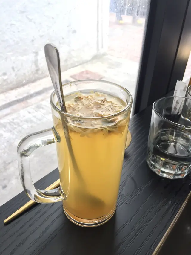 我哋兩個都加左$9要一杯特飲,菊花薑蜜好重菊花味,味道微微甜,帶有薑味,好啱冬天飲呀