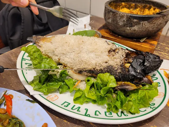🐟 泰式香茅鹽燒烏頭呢個烏頭真係燒得好香!外皮脆脆,魚肉嫩滑,帶有香茅嘅淡淡香氣,鹽燒嘅手法令魚肉更加惹味,一啖接一啖,完全停唔到口!🐟🔥