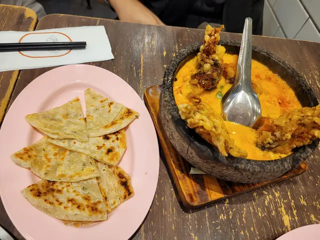 呢個黃咖喱同軟殼蟹嘅組合真係好正!咖喱味道香濃,但又唔會太辣,軟殼蟹炸得外脆內嫩,配埋手抓餅一齊食,吸哂咖喱汁,真係一流!🦀🍛