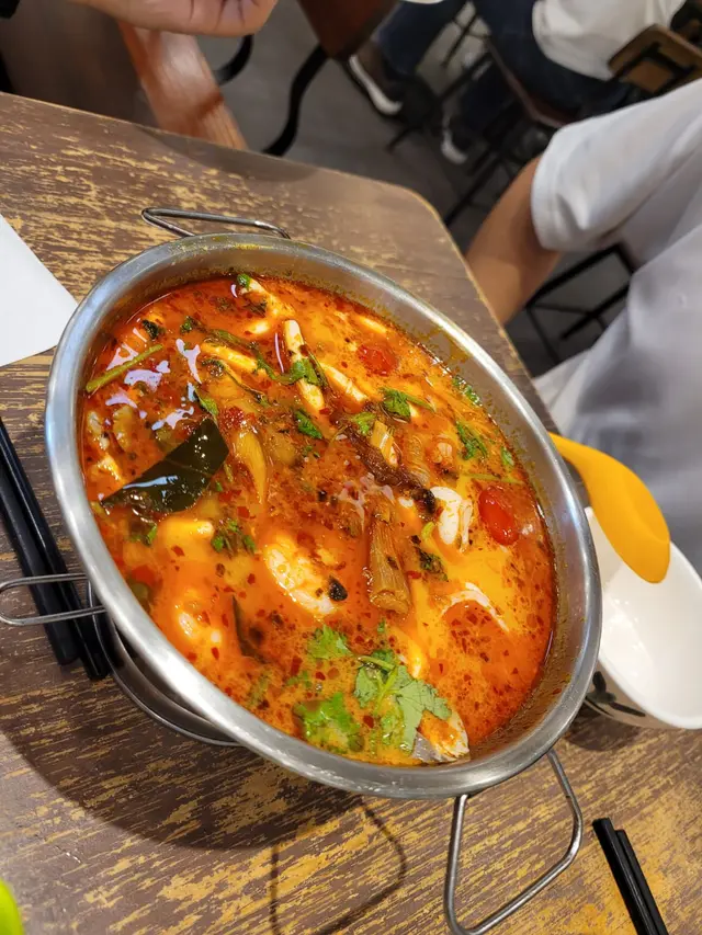 呢個冬蔭公湯酸酸辣辣,味道好濃郁,湯底有足料嘅大蝦同菇類,飲完之後即刻覺得好開胃!🌶️🍤