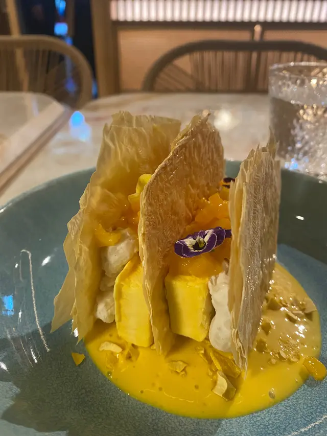 絕對係今晚既signature必叫之選, 最出色沒有之一, 用左腐皮去代替拿破崙既酥皮, 係好突破既嘗試, 怕味道唔夾所以加左小小糖係面先去焗, 味道配搭清新好多, 腐皮焗完好脆好似薯片咁, 中間係泰式椰芒雪糕加左糯米, 冰凍得黎又好煙銀好有趣。