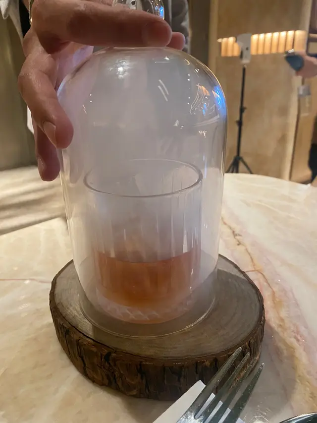 Whisky based既cocktail再用蘋果木去做個煙燻處理, 本身whisky都已經係一種講求煙燻泥煤味道既烈酒, 再加左蘋果木煙燻, 打開個蓋湧出一陣蘋果木香之後淡淡透出whisky原本既煙燻味, 追求嗅覺既層次感。