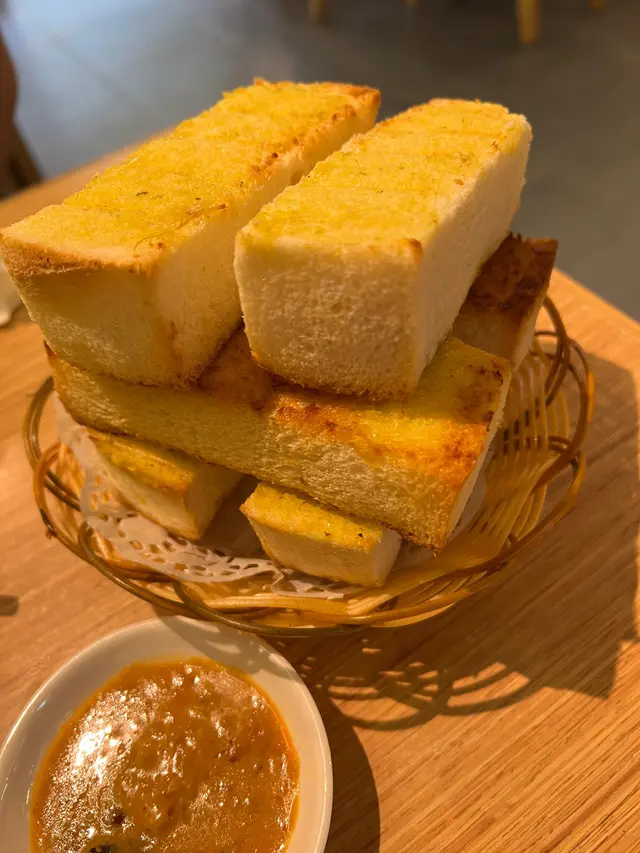 由於見佢午市套餐性價比好高,於是我地再單點左兩樣野食- 沙嗲串燒+ 蒜蓉包