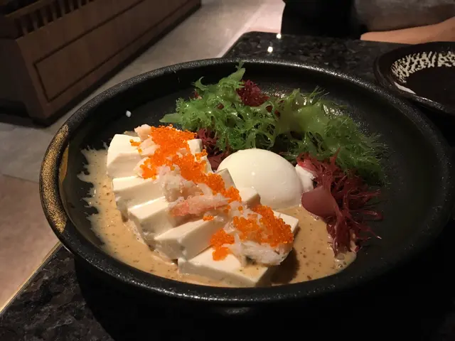 沙律嘅蟹肉好鮮甜;豆腐厚薄適中,豆味香濃,口感嫩滑;海藻都好清爽;溫泉蛋流心顏色金黃,撈埋食好濃郁~