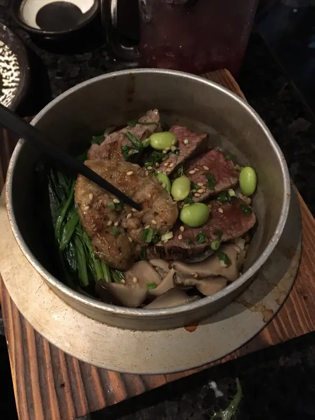 呢度釜飯咁特別,我地點左燒鵝肝牛小排釜飯,仲有其他小食。