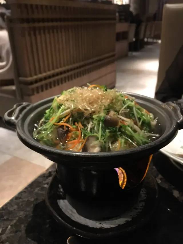 木魚湯味道比較淡,檯面有岩鹽,可以按照個人喜好加岩鹽調味。翡翠苗好嫩滑,加上有個爐係下面加熱,食嘅時候keep住湯熱菜香~