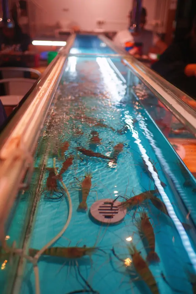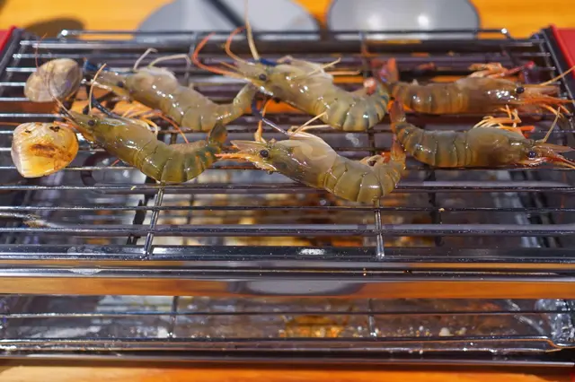 餐廳環境亁淨 , 闊落 ,每張枱都有一個爐,旁邊有個大水缸 , 養了大量生猛的大頭蝦,可以親身活捉新鮮生猛流水蝦,然後自助BBQ。