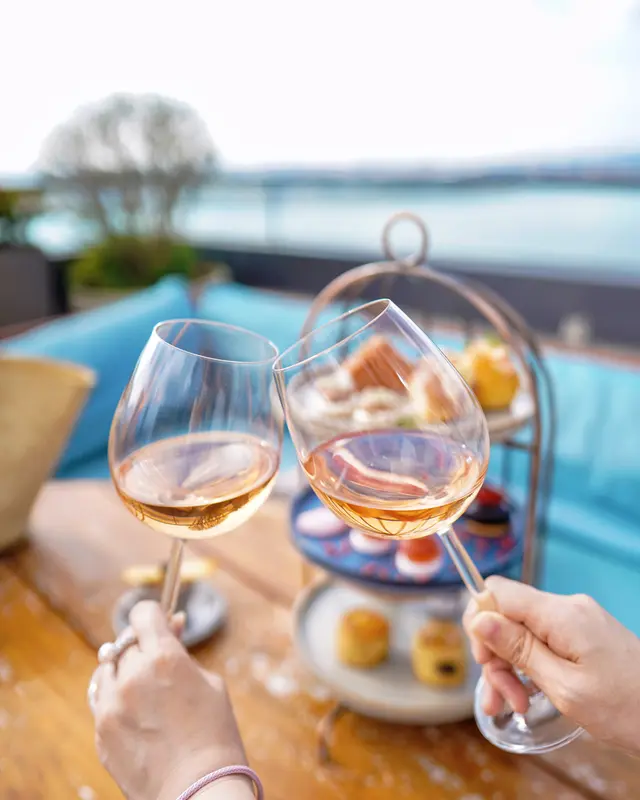 望到大嶼美景好迷人☺️一邊品嚐粉色下午茶