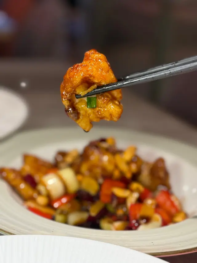 宮保蝦球天婦羅炸得外皮酥脆,蝦球爽口彈牙,配上帶微辣的宮保醬汁,增添惹味而不搶蝦的鮮甜。