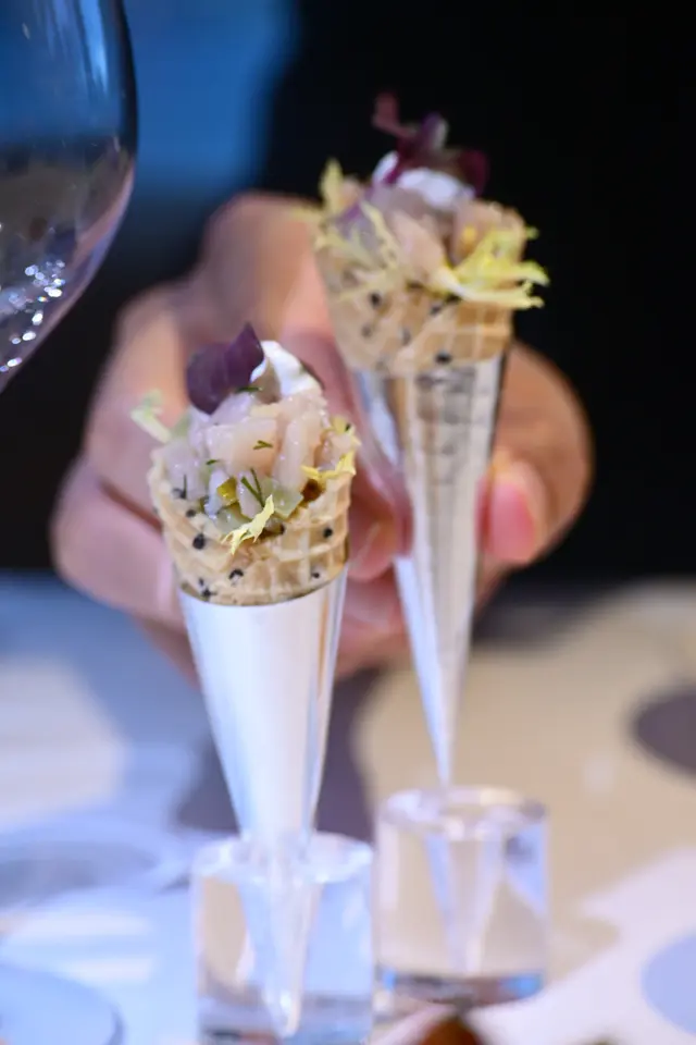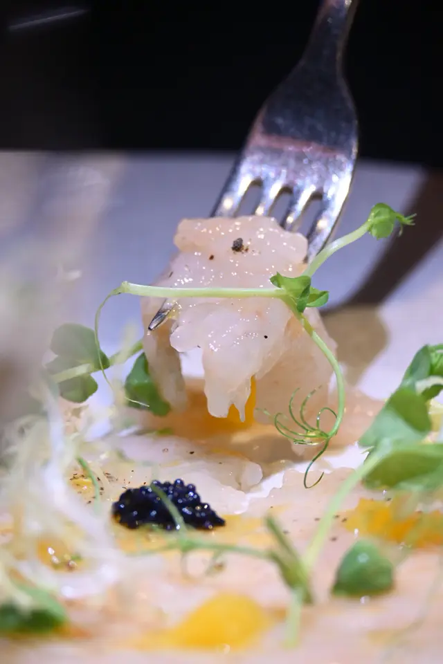 ▶︎ 紅蝦薄片搭配魚子醬 牛油果醬 香橙等 鹹鮮甘甜都有 口感亦格外豐富