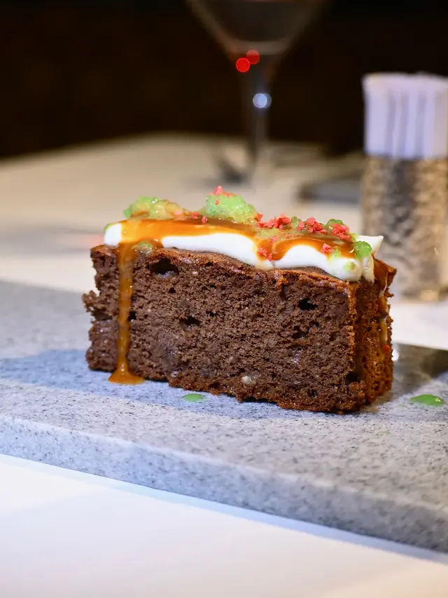 🍰 榛子蛋糕、白朱古力慕斯、青蘆筍冰沙及焦糖