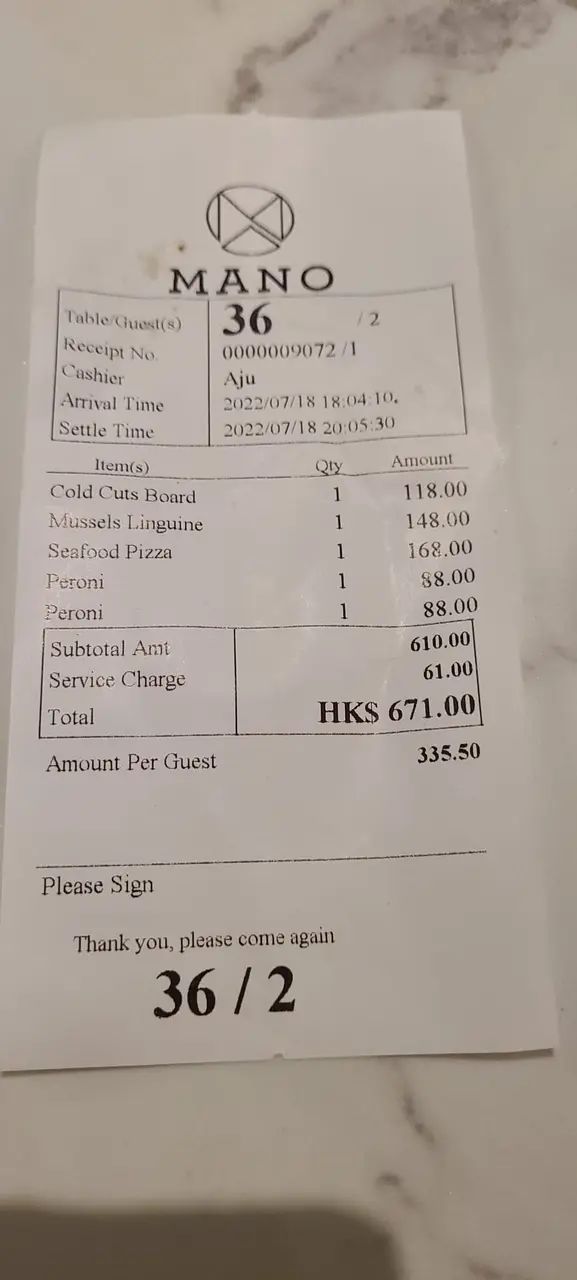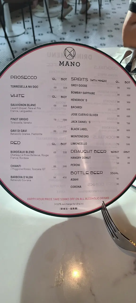 和honey去了海濱匯走走。打算找間餐廳食吓嘢hea 一下。上網發現這家Mano好像不錯。主打pizza同西餐,望落價錢唔算太貴,於是決定試下