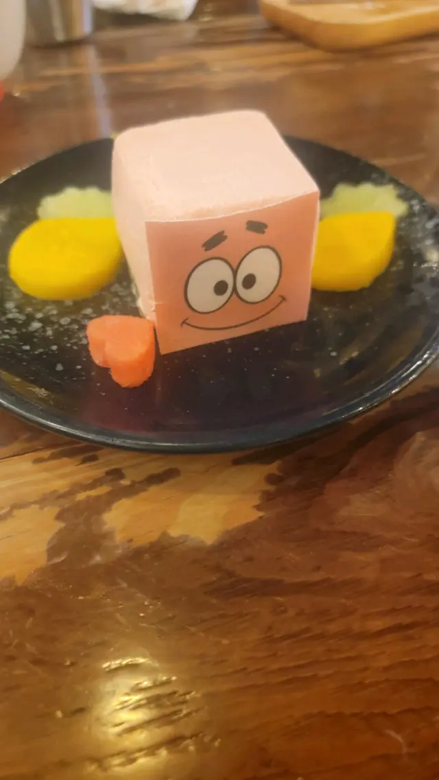 三片豆腐都印有海棉寶寶角色圖案🤭