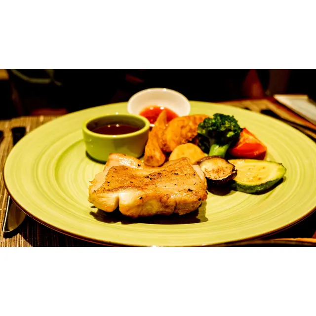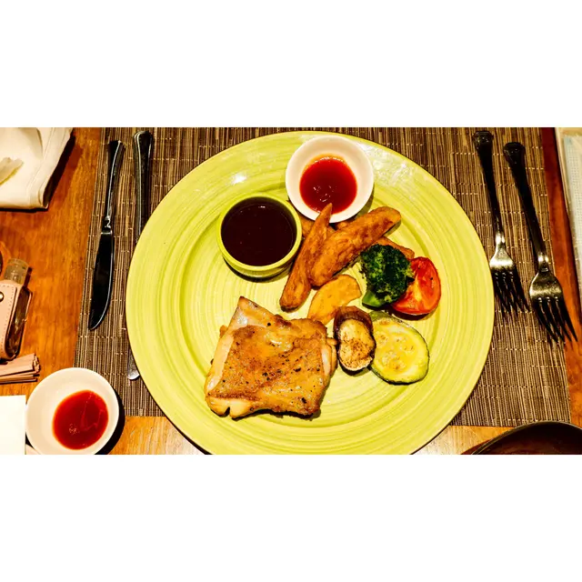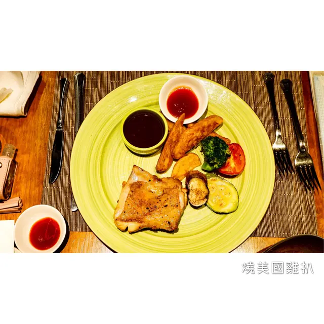 同樣有烤薯當配菜,主角的雞皮煎得金黃,但個人認為可以再更香脆一點。因為部位選用雞腿位置,所以肉質都是嫩的,咬下去感受到它的肉汁,不會乾巴巴的,不過雞肉本身味道比較淡,主要依靠醬汁去提升整個味道。