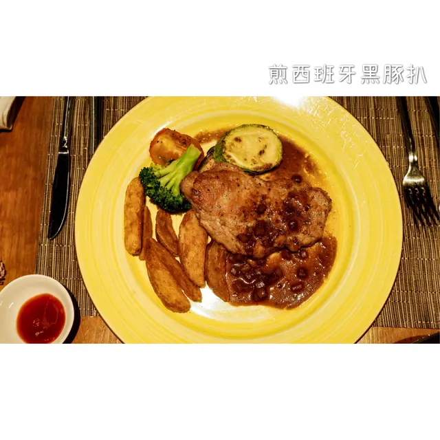 🌟煎西班牙黑豚扒(配蘋果芥末汁及玉米糕條)🌟