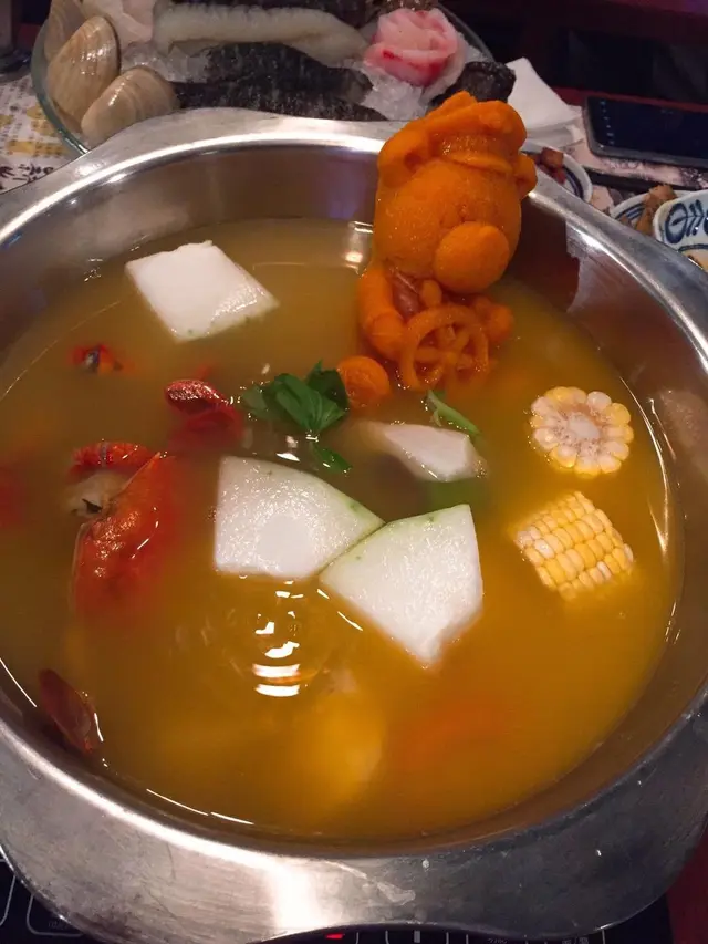 湯底方面擇左個新鮮蟹花甲海鮮湯底,材料非常豐富,蟹好新鮮好多膏,花甲清甜,南瓜蓉熊仔夠吸精仲味道夠濃郁。