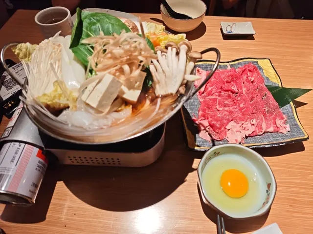 接下來,我們品嚐了壽喜牛肉鍋,使用了優質的和牛,搭配日本蛋,湯底濃郁而不膩,每一口都是滿滿的幸福感。牛肉在鍋中輕輕一煮,瞬間變得鮮嫩可口,讓人一再回味。