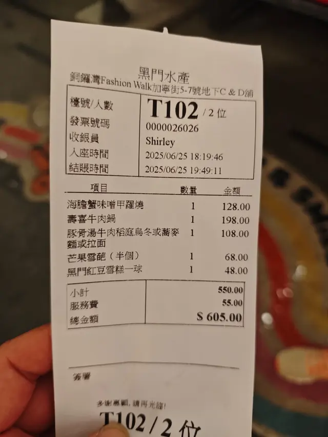 總的來說,黑門水產的菜品新鮮且富有創意,服務態度也相當友善,讓我們度過了一個愉快的晚上,期待下次再來探訪更多美味!