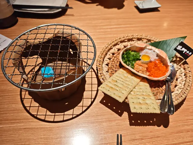 我們點了幾道招牌菜,其中最令人印象深刻的是海膽蟹味噌甲羅燒。這道菜以新鮮的海膽和蟹味噌為主料,配合烤制的蟹殼,香氣四溢,口感豐富,吃上一口便能感受到海洋的鮮味,與清酒搭配更是恰到好處,充分體現了料理的精髓。