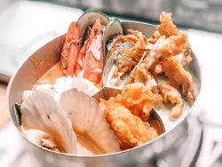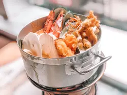 不過咖哩三重奏$198仲抵食🤩性價比好高,一個價錢3種味道✨✨食曬6款海鮮😍紅咖哩有蝦、青口、鮮魷😎黃咖哩就有扇貝同魚柳😏青咖哩有埋軟殻蟹🤩呢個真係炸到脆卜卜😆仲配埋蒜蓉包俾你蘸住咖哩食😍