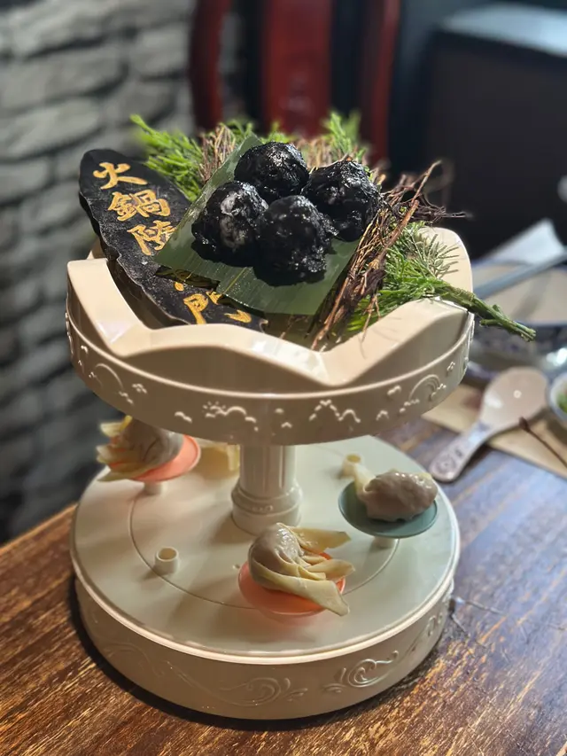 火鍋配料有手切本地牛頸脊($328) 厚切唔韌超重牛味🐮 誠意之作有黑松露蟹肉餃🥟、手打墨汁芝心墨魚丸🦑($78/4粒)