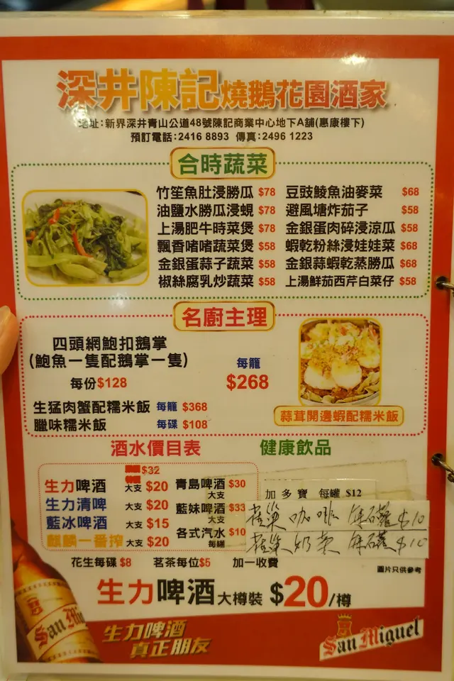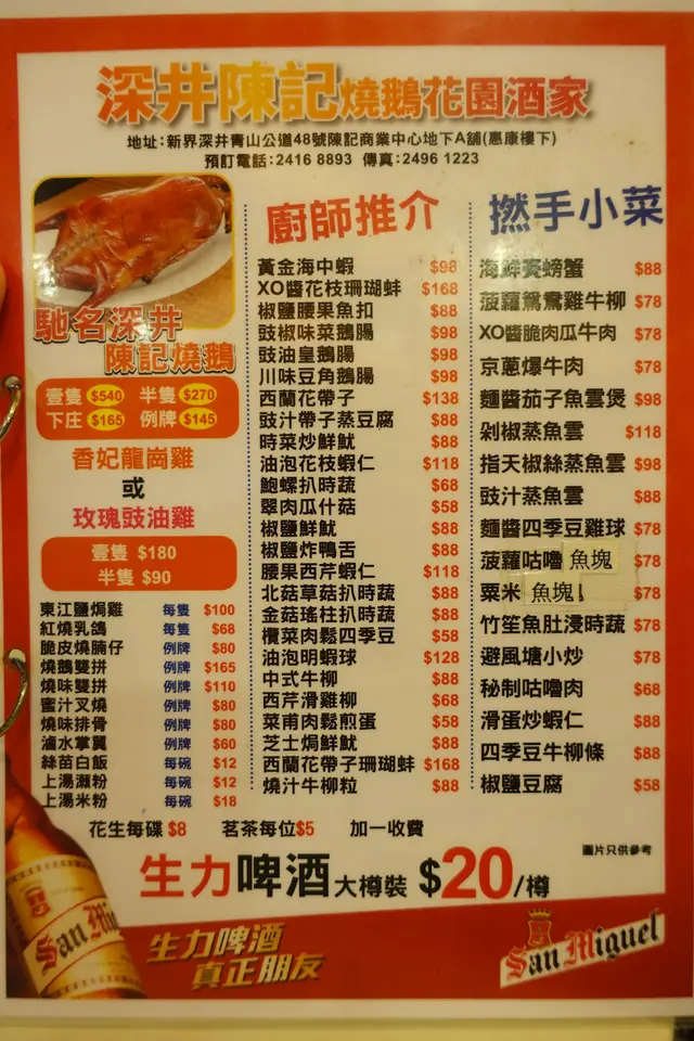 在兩個月前,男朋友約了我及他認識多年的教友一家四口連工人姐姐,我們一行7人 (5大2細),走到深井他推介的 <陳記燒鵝花園餐廳> 食晚飯!