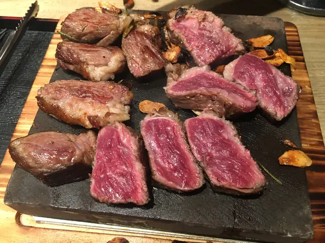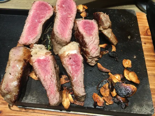 店員教路炒香蒜片同香草之後加少少鹽同黑胡椒,再切開一塊塊牛慢慢燒就最易控制火候啦